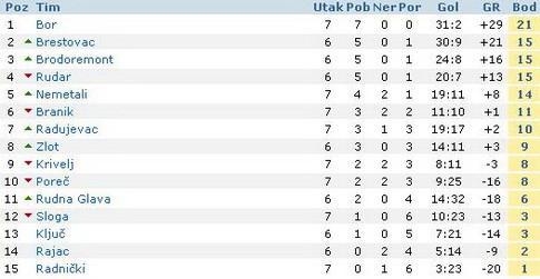 Radujevac-Sloga 2:1, Rajac-Nemetali 3:4, Zlot-Poreč 5:1, Bor-Rudar 4-1, Brodoremont-Krivelj 2:1, Brestovac-Branik 4:1, Rudna Glava-Radnički 4:0.