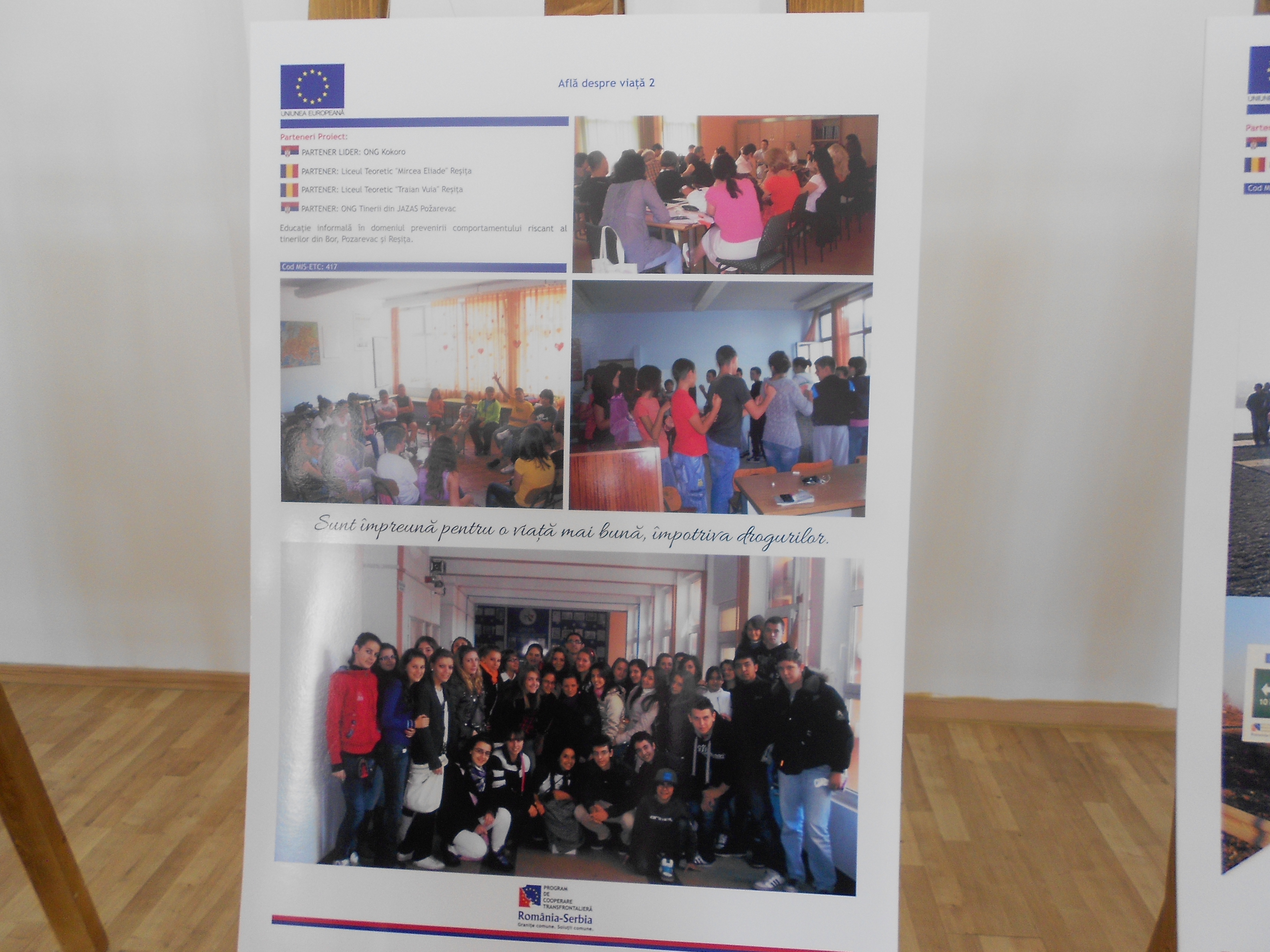 - Izložbu fotografija 22.septembra 2016. od 16h, u Trajanovom parku u Drobeti Turn Severin na temu „DELIMO GRANICE, POSTAJEMO BLIŽI!“, gde su bili prikazani rezultati projekata finansiranih u okviru programa prekogranične saradnje IPA RUMUNIJA-SRBIJA kroz forografije.