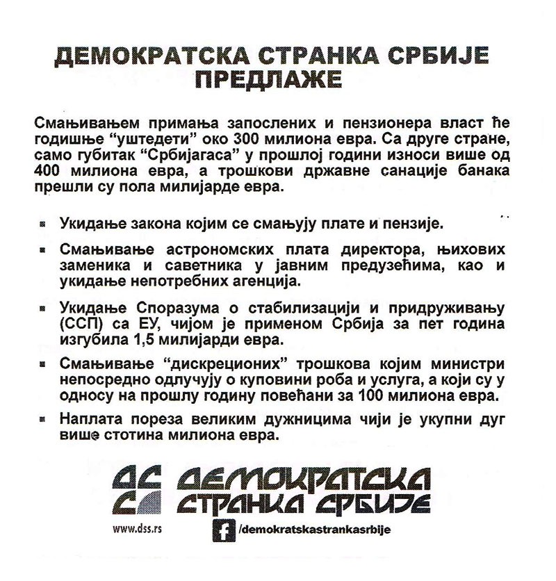 Demokratska stranka Srbije predlaže vlastima u Srbiji…