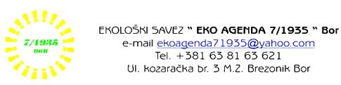 Zadovoljni smo što su dopisi i zahtevi Ekoagende 7/1935. upućeni Vama i resornim ministarstvima po pitanju završetka započetih radova na rekonstrukciji topionice i nove Fabrike sumporne kiseline (jedinom pravom i konačnom rešenju ekoloških problema u Boru) naišli na Vaše razumevanje.Želimo da Vam verujemo da ćete učiniti sve da do polovine 2014. godine nebo nad Borom bude čisto.Sto deset godina se čeka čist vazduh nad Borom, i sačekaćemo još jedno proleće, jer bez čistog vazduha,vode i zemljišta nema uspešnog turizma i poljoprivredne proizvodnje i organske zdrave hrane.
