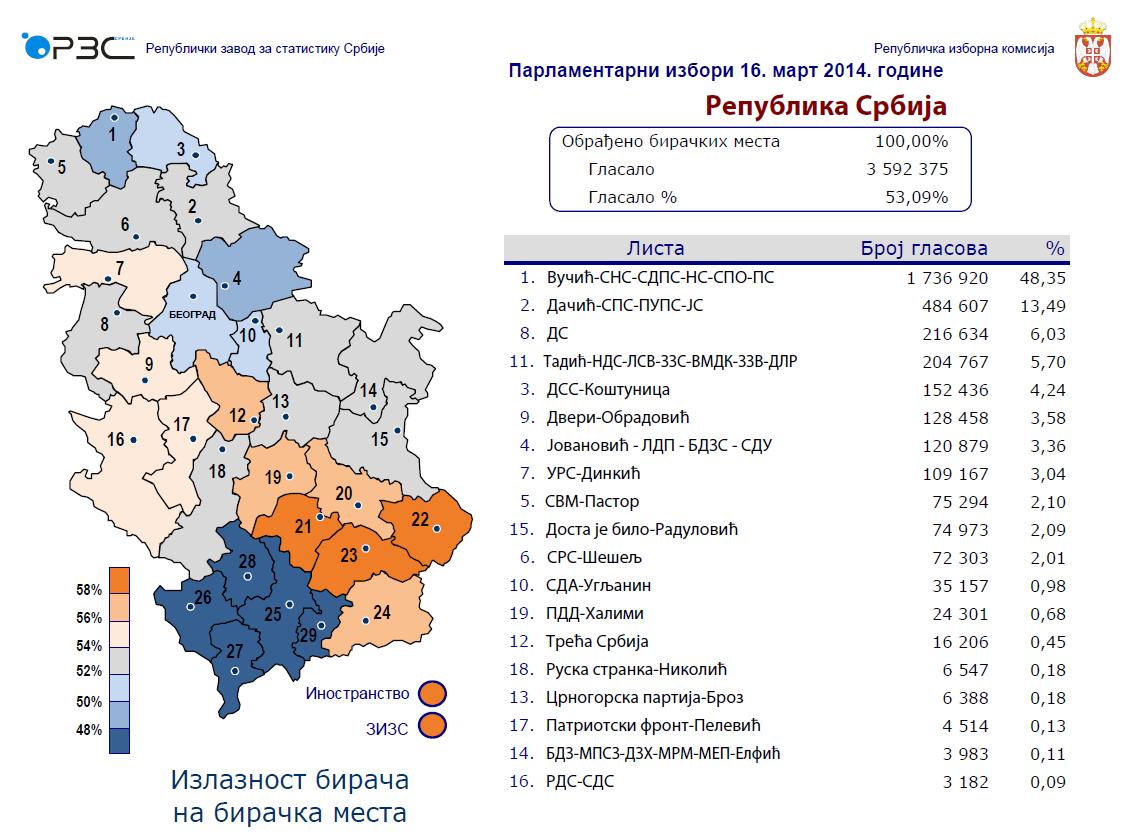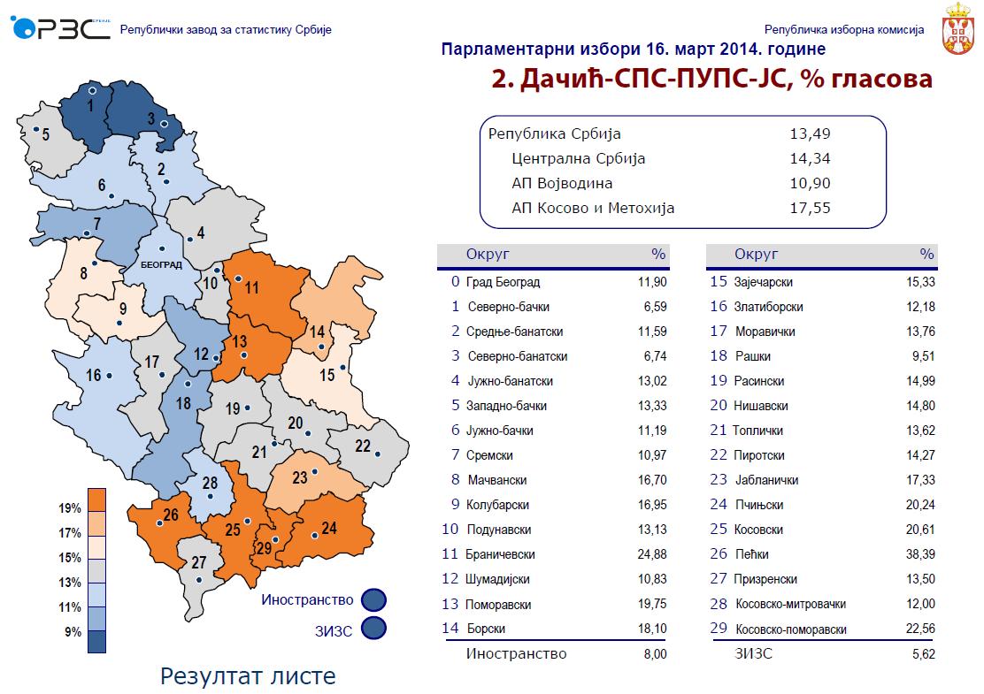 2. IVICA DAČIĆ – „Socijalistička partija Srbije (SPS), Partija ujedinjenih penzionera Srbije (PUPS), Jedinstvena Srbija (JS)“ (484.607 glasova-44 mandata)