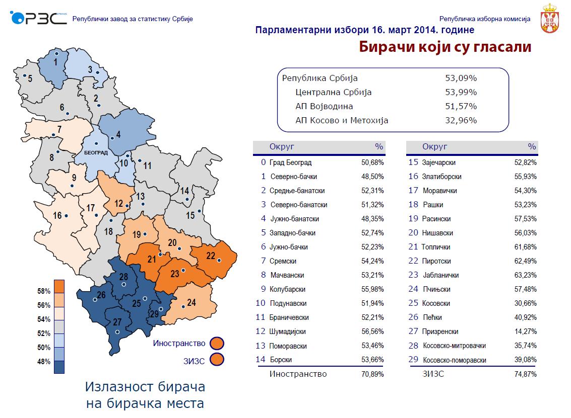 Komisija je većinom glasova usvojila Izveštaj o ukupnim rezultatima izbora za narodne poslanike Narodne skupštine Republike Srbije, održanih 16. marta 2014. godine i ponovljenih na jednom biračkom mestu 23.marta 2014.godine.