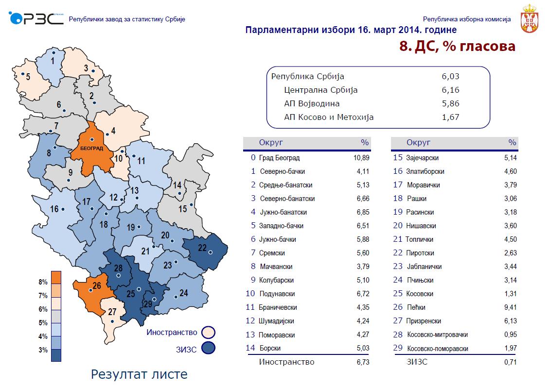 8. DEMOKRATSKA STRANKA SRBIJE – VOJISLAV KOŠTUNICA (152.436 glasova -0 mandata)