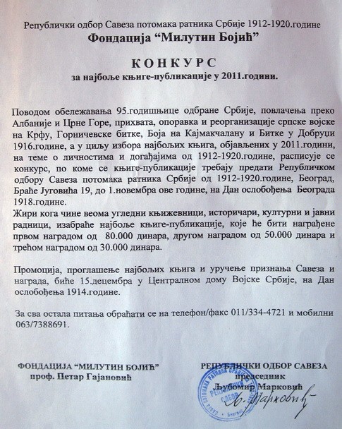 KONKURS FONDACIJE „MILUTIN BOJIĆ“