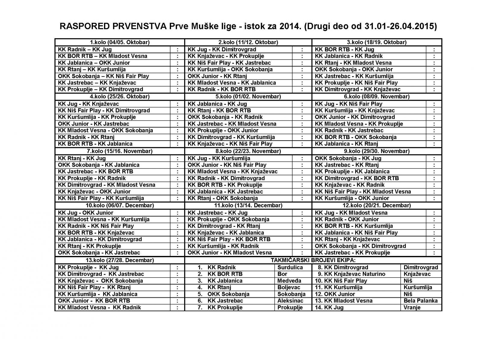 U Nišu je 20.septembra održan sastanak klubova Prve Regionalne lige istok, na kome su izvučeni takmičarski brojevi ekipa i usvojen kalendar takmičenja. Ekipa Bora će u prvom kolu dočekati na svom parketu ekipu Mladost Vesna iz Bele Palanke. Meč će se odigrati 4. ili 5. oktobra.