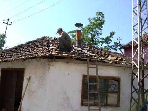 U centru sela Temska, na putu Knjaževac-Pirot preko Stare planine, na staroj kući domaćin “krpi” krov pred nastupajuće hladne i kišne dane. To je uobičajen posao u septembru i počertkom oktobra kako bi domaćin spremno dočekao zimu.