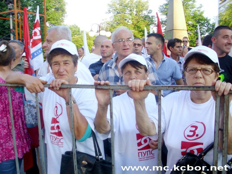 Na mitingu, koji je prethodno začinila popularna estradna umetnica Rada Manojlović, govorili su istaknuti lideri koalicije SPS-PUPS-JS, prof. dr Mića Jovanović, Dragan Marković Palma, Žarko Obradović, predstavnici PUPS-a, kandidati za odbornike na čelu sa dr Mirkom Nikolićem.