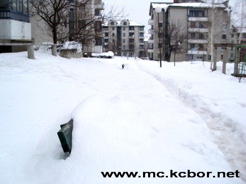 U Boru je i danas pre podne kraj ulica i trotoara bilo snega kao nikada ranije. Brda belog pokrivača ometala su saobraćaj, ne računajući glavnu ulicu. Iako je sa streha kapljala voda, bilo je i ledenica. Mehanizacija komunalaca usredsredila se na seoske zavejane puteva, a grad je ostao da pričeka. Temperatura iznad nule “načela” je i beli snežni folsfagen u Novom gradskom centru ( odakle su svi ovi snimci) koga su sačinili srednjoškolci u nameri da, kad stigne novi veći sneg, ovekovače i ogromni rudarski kiper.
