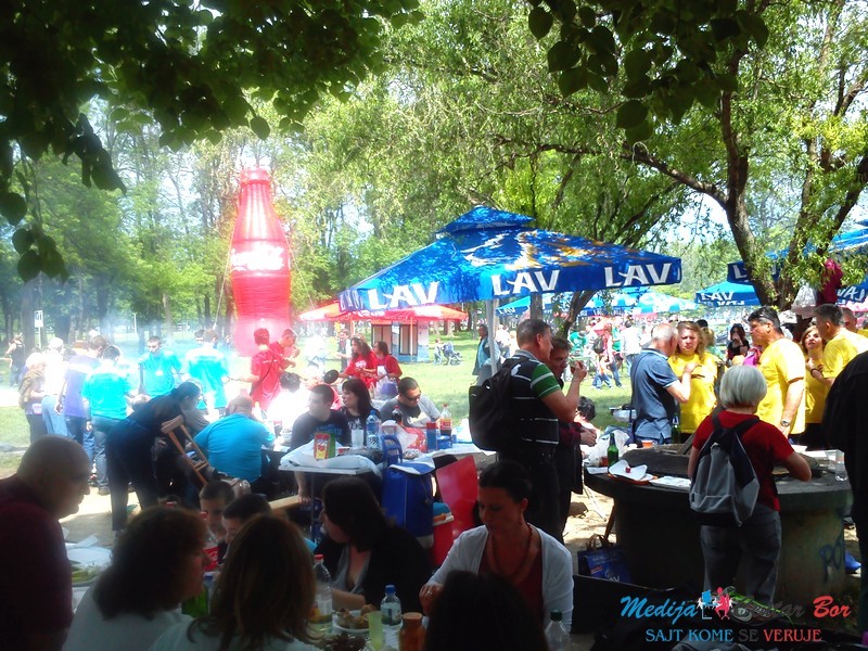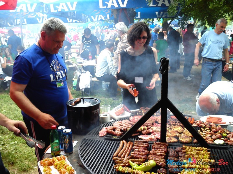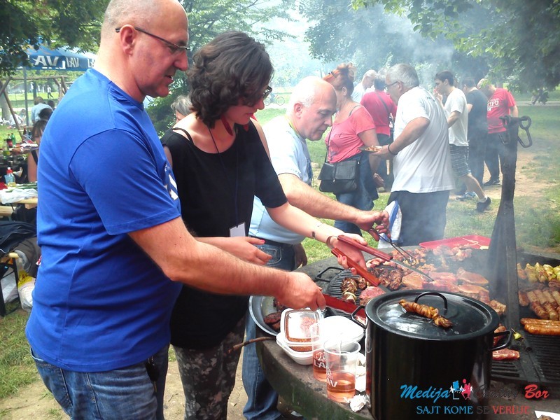 Mnogobrojni timovi užurbano su pripremali meso i povrće koje su potom pekli na žaru. Na meniju se moglo naći sve ono što se, inače, sprema kada se staro društvo okupi na ručku u prirodi: ćevapi, pljeskavice, šnicle, kobasice i ražnjići… Ipak, mogla se videti i nešto „čorbasto“, poput gulaša i svadbarskog kupusa. Muški deo svake ekipe pretežno je bio zadužen za okretanje mesa, dok su dame spremale salate i seckale luk, bez koga roštilj ne može da se zamisli.
