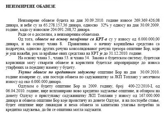 ОПШТИНА БОР У РЕКОДНОМ ДУГУ ОД 270 МИЛИОНА ДИНАРА