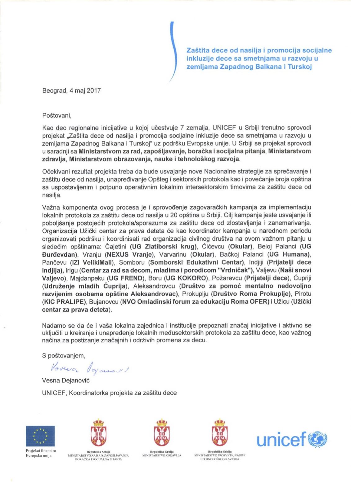 Не постоји оправдање за било које насиље над децом, а сваки облик насиља над децом може и мора се спречити. Споразум се заснива на поштовању Основних принципа Конвенције о правима детета и Устава Републике Србије: