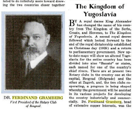 Званични гласник Ротари Интернационала, „The Rotarian“, поносан на својих (до сада) 17 нобеловаца и 19 пулицероваца, у свом децембарском издању за 1929. годину обележава и оснивање Ротари клуба Београд и уз напис објављује и Грамбергову слику.