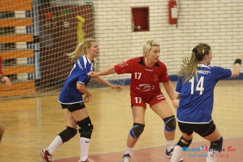 Borske rukometašice uspele su da pobede direktnog konkurenta za drugo mesto, koje vodi u baraž za popunu „Superlige“. U ovoj utakmici Borankama je bila potrebna pobeda od sedam golova prednosti, kako bi u međusobnom skoru bile bolje od Pirota jer obe ekipe imaju isti broj bodova. Mnogi ljubitelji sporta u Boru, sumnjali su da je ova ekipa sposobna da ostvari ovako visoku pobedu protiv odličnih „Piroćanki“, ali su domaće igračice velikom borbenošću i željom uspele da ostvare plan koji je zacrtan još na početku sezone. U prvom delu Bor je vodio stalno sa tri, četiri gola razlike, da bi u samoj završnici poluvremena sa tri uzastopna gola, prednost bila povećana na pet razlike, što je davalo nadu da se u nastavku može dostići željena prednost. Gošće su u nastavku bile oslabljene jer im se povredila do tada najefikasnija igračica Aleksandra Jovanović, koju je zamenila iskusna Nina Tošić (nekada je igrala i za Bor), koja je do tada ekipu vodila sa klupe kao trener. Prednost Boranki je konstantno rasla da bi u 47.minutu iznosila maksimalnih 12 golova prednosti (27:15). U tim trenutcima se činilo da je sve rešeno, ali kao da je kod domaćih došlo do malog opuštanja, a u ekipi Pirota na scenu stupa golman Dinčić, koja brani nekoliko „zicera“ i dva sedmerca i gošće prave seriju od 6:0. U poslednja četiri minuta vodila se žestoka borba. Boranke u poslednjim trenutcima na sedam golova razlike nisu iskoristile napad, gošće su imale šansu da smanje na za njih povoljnih 6 razlike ali čuvar mreže Bora Jovanović odlično brani poslednji udarac sa šest metara kada su već svi videli loptu u mreži, i donosi svojoj ekipi veliku radost. U ekipi Bora istakle su se Sanja Stanković sa 8 golova, kapiten Mihajlović sa 7, Sara Stankovski i Radević sa po 4. Kod gošći bolje od ostalih uz golmana Dinčić bile su Drinčić i Tančić sa po 5 golova i Nina Tošić sa 3 gola koja je postigla u odlučujućim trenutcima.